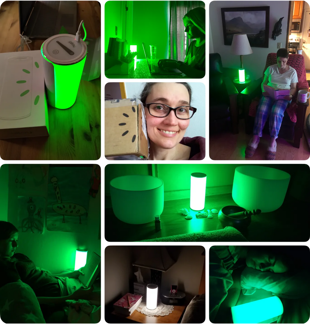 Allay Lamp's patented green light calms your brain for deeper sleep, reduced eye strain, and improved relaxation.